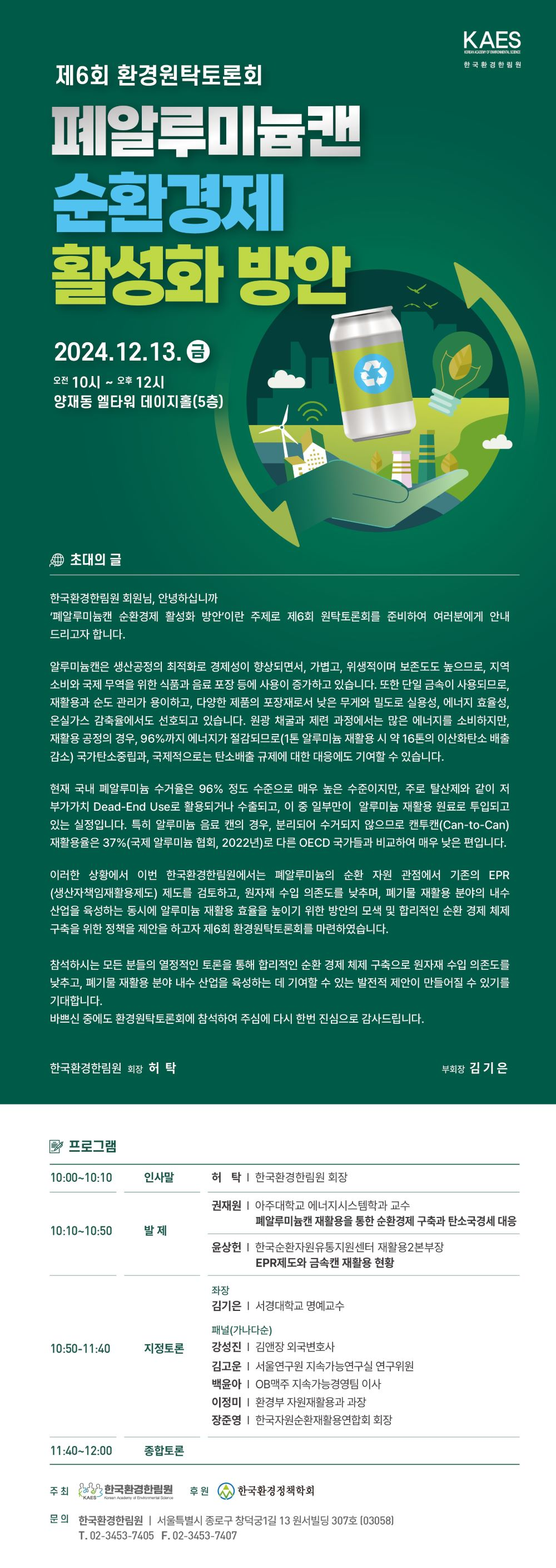 제6회 환경원탁토론회 폐알루미늄캔 순환경제 활성화 방안