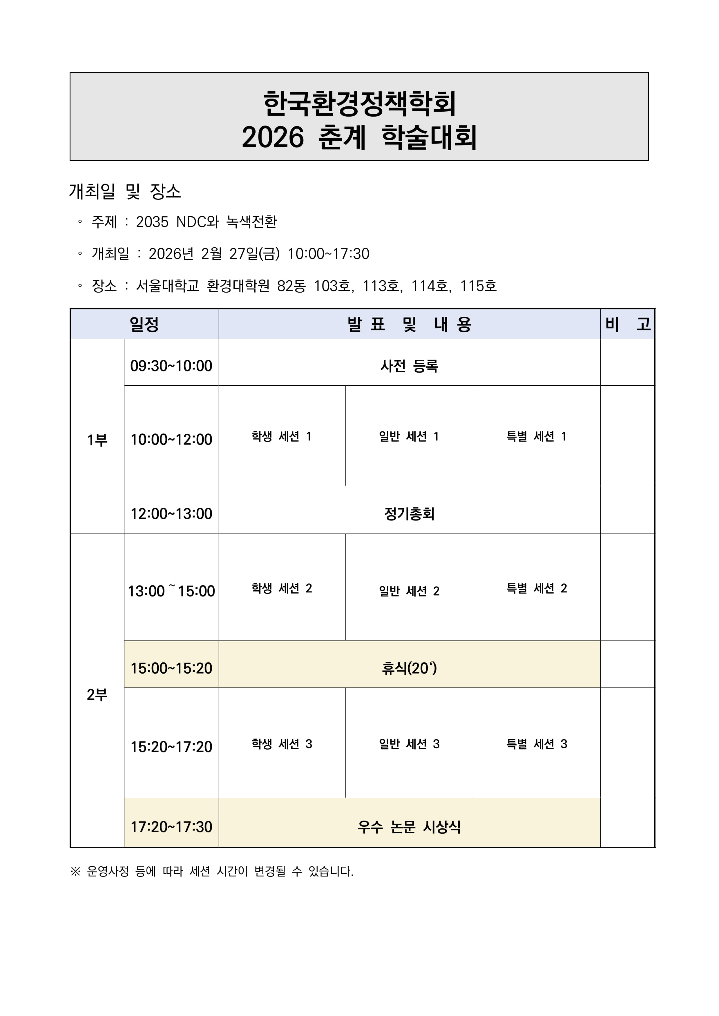 2026년도 한국환경정책학회 춘계학술대회 안내