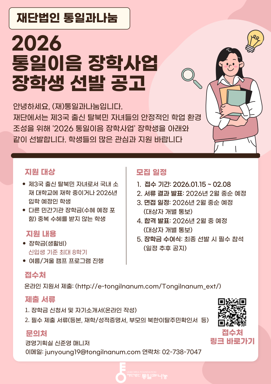 [통일과나눔] 2026 통일이음 장학사업 장학생 선발 공고